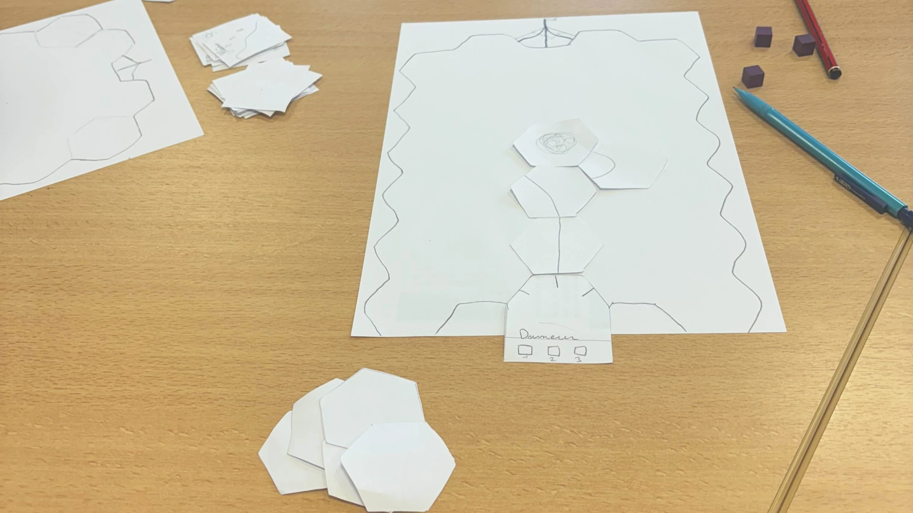 taking turns placing hexagonal tiles to reach the summit. After several playtesting sessions,